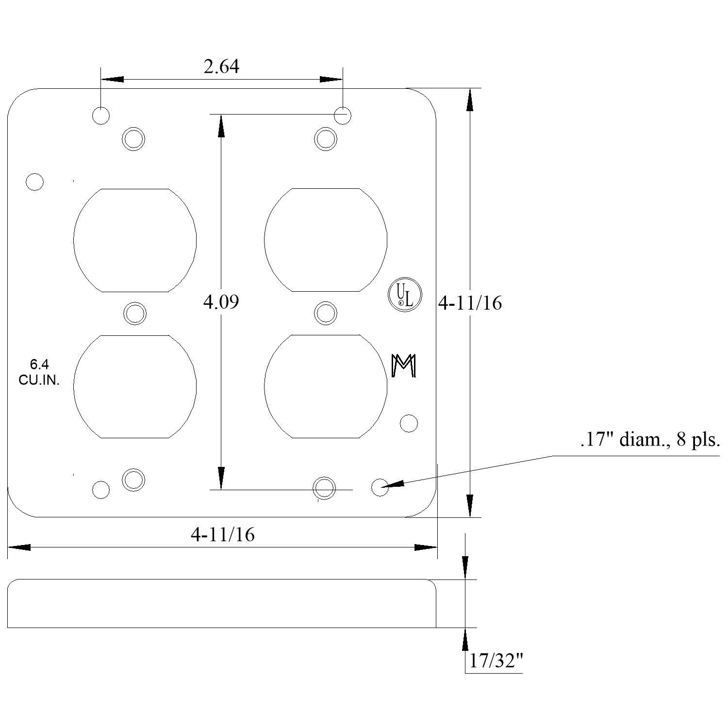 4-11/16 inch square cover, raised 1/2 inch, (2) duplex