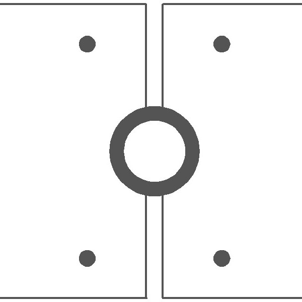 2-gang with 1/2 inch hole with rubber grommet and mounting straps for datacom, standard size, split plate, metallic finish wallplate