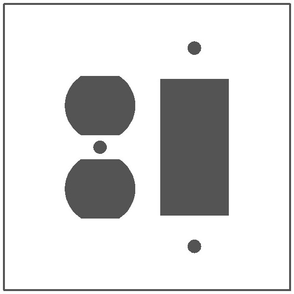 2-gang with (1) duplex centered, oversize, metallic finish wallplate
