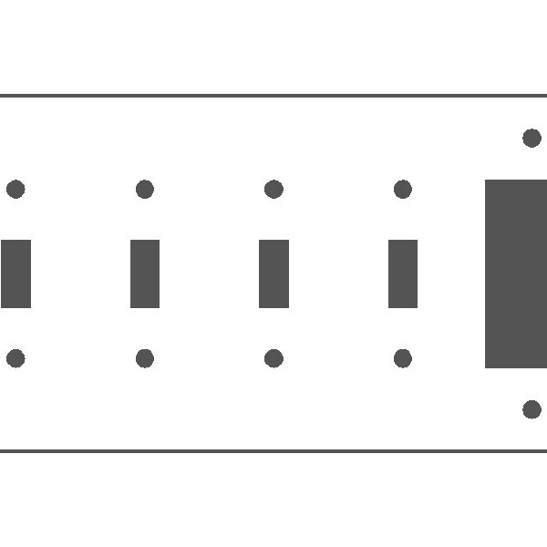 5-gang with (4) toggle / (1) duplex, Princess size, metallic finish wallplate