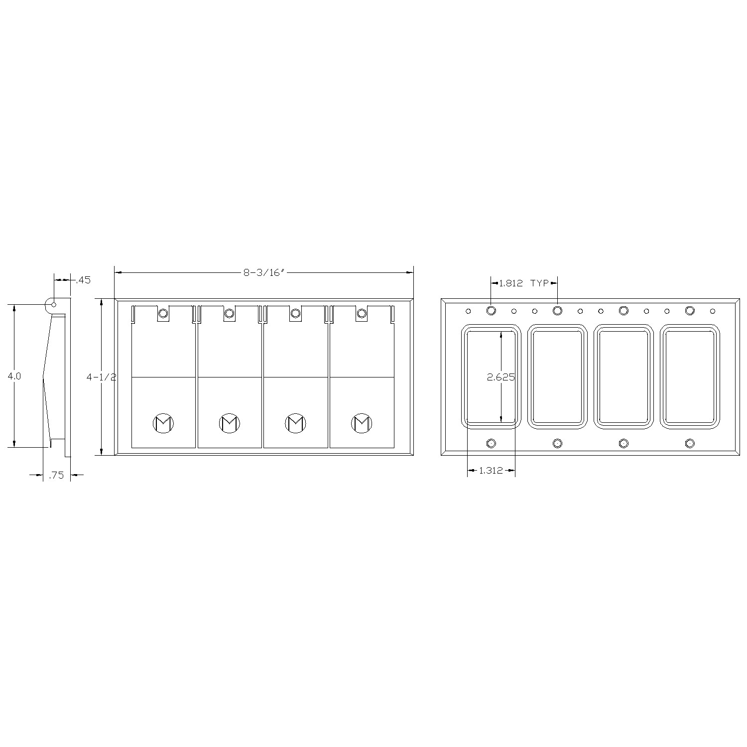 4-gang toggle switch cover with four 15A-125V toggle switches